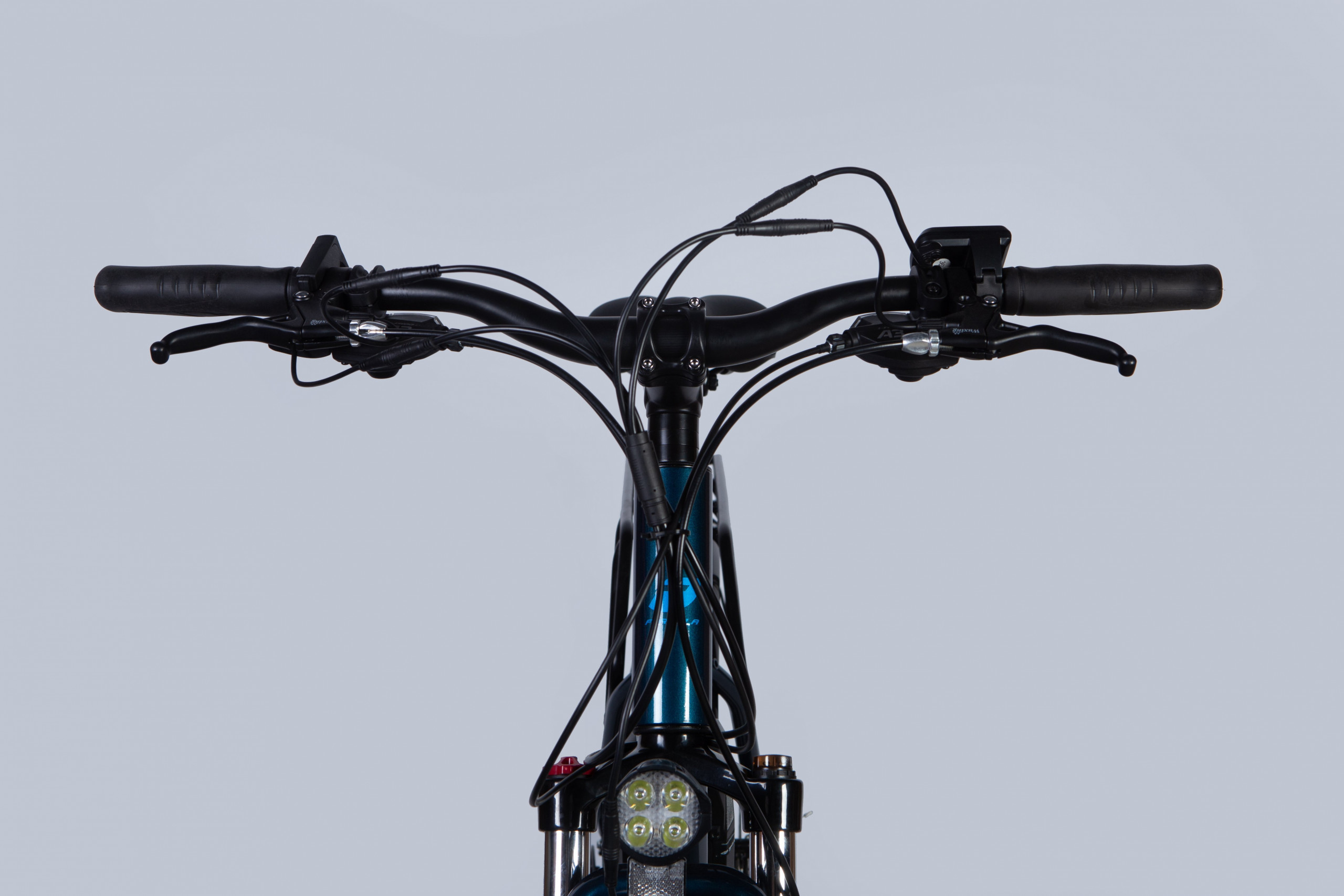 Задний редукторный мотор мощностью 500 Вт и напряжением 48 В обеспечивает быстрый разгон и уверенное движение на скорости до 36 км/ч, сохраняя плавность езды даже на подъёмах. Аккумулятор ёмкостью 12.5 Ач, установленный на нижней трубе, предоставляет до 60 км пробега, а благодаря 600 Вт·ч энергии велосипед подходит как для ежедневных маршрутов, так и для длительных выездов.