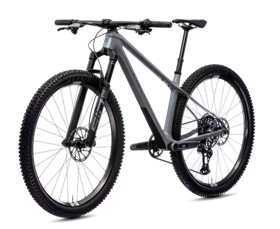 Рама BIG.NINE TR CF3 III Carbon имеет современную геометрию с удлиненной базой, пологим углом рулевой и усиленными крепежными зонами. Это позволяет уверенно проходить спуски, сохраняя эффективность на подъемах. Воздушная вилка RockShox SID Select+ с ходом 120 мм и дистанционной блокировкой обеспечивает плавную работу и точное управление на неровностях.