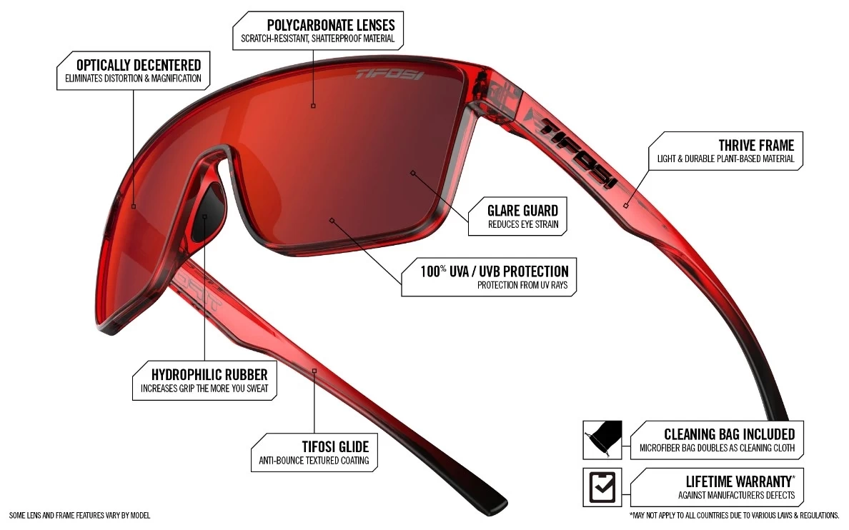 Технология Tifosi Glide: Позволяет оправе удобно скользить и обеспечивает нескользящую посадку, предотвращая отскакивание очков при активных движениях.