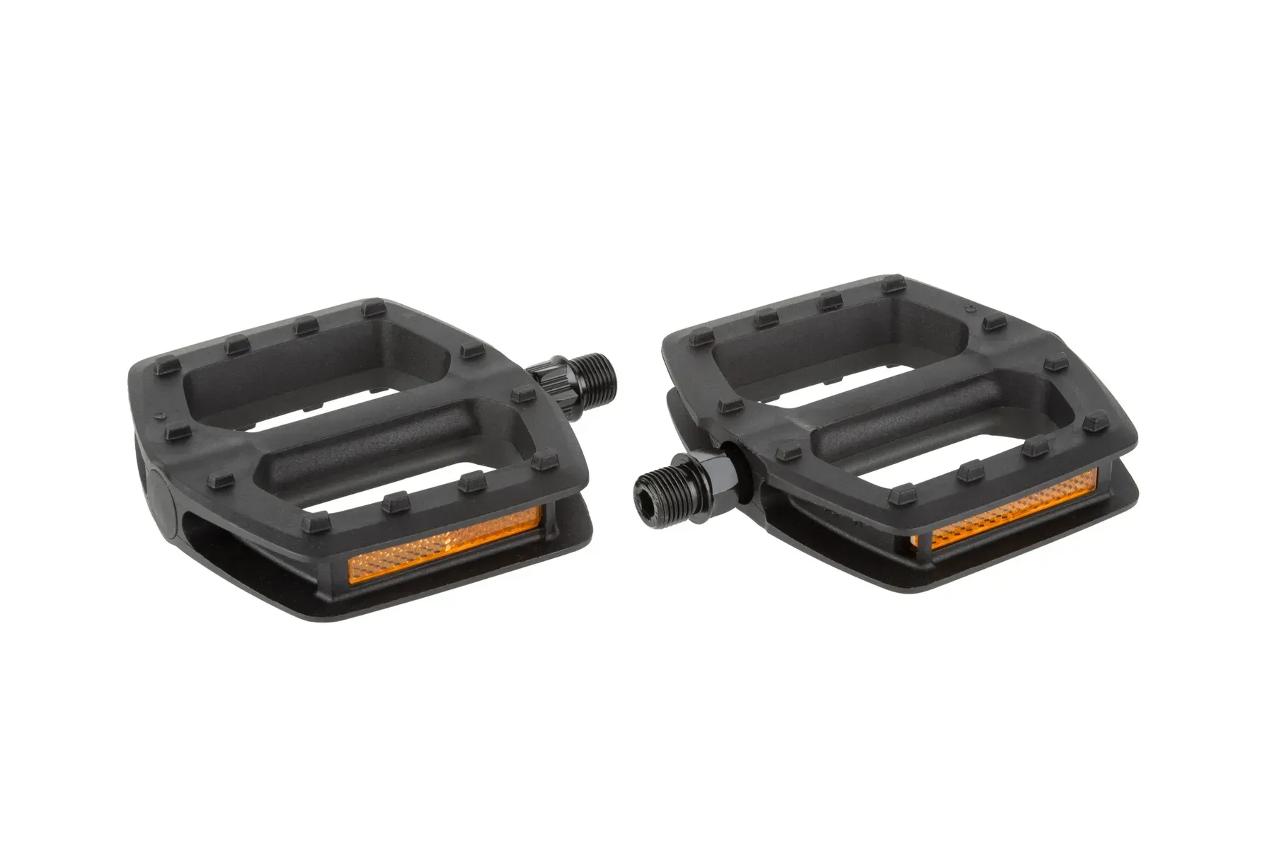 Педали совместимы с универсальными стандартами резьбы, что позволяет их легко интегрировать с разными моделями велосипедов. Черный цвет корпуса придает им стильный вид, который подходит любому дизайну велосипеда, от классического до современного.