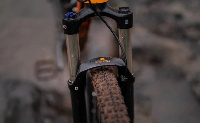 Максимальный контакт заднего колеса гарантирует фирменная система подвески Faux Bar System с цельнометаллическим линком. Передняя амортизация обеспечивается воздушной вилкой с магниевыми ногами Suntour XCR32 с регулировкой отскока. Это относительно недорогая, но эффективная и прочная вилка.