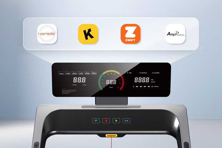 Завдяки функції Bluetooth користувачі можуть підключати свої пристрої на базі Android або iOS до бігової доріжки та синхронізувати дані тренувань із програмами, такими як Zwift. Це дозволяє відображати параметри тренувань на екрані мобільного пристрою, вести облік прогресу, ділитися результатами з друзями та робити заняття більш інтерактивними та мотивуючими.