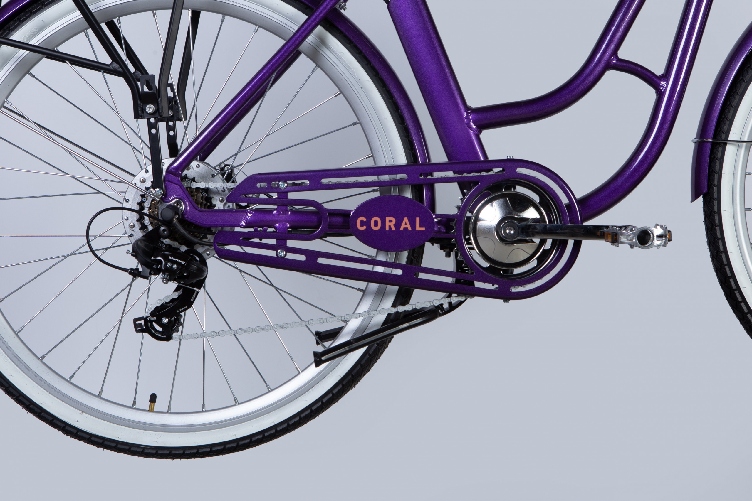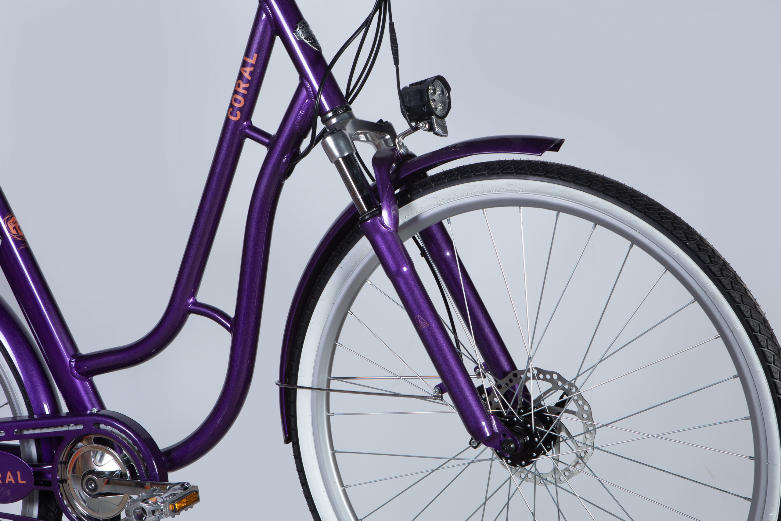 Електровелосипед Dorozhnik eCoral 500 Вт (2025) — сучасний міський велосипед для жінок та дорослих. Він оснащений редукторним заднім мотор-колесом потужністю 500 Вт з комбінованим керуванням (PAS + ручка газу), що дозволяє комфортно рухатися по місту зі швидкістю до 29 км/год. Літій-іонний акумулятор 12,5 Ач з кріпленням на багажнику забезпечує пробіг до 60 км на одному заряді.