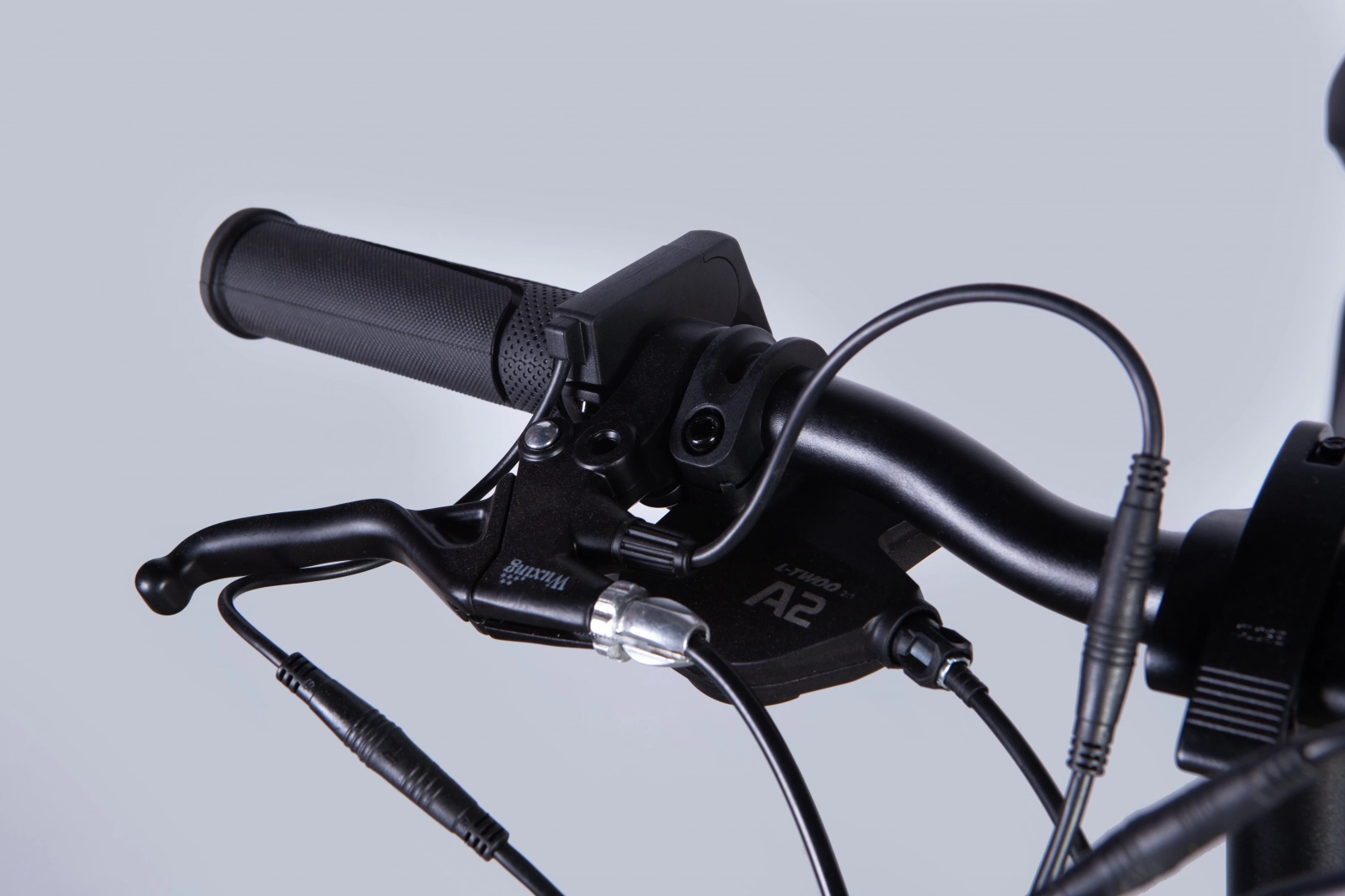 Алюмінієві втулки та шини з гарним накатом забезпечують впевнену поведінку на міських вулицях та тротуарах. Головна особливість – це задній мотор-колесо редукторний потужністю 500 Вт і напругою 48 В. Такий двигун поєднує високу тягу, компактність і надійність. Він дозволяє розвивати швидкість до 30 км/год, легко долати підйоми та впевнено стартувати на перехрестях. Завдяки редукторній конструкції мотор працює тихіше та ефективніше на низьких обертах. Управління електроприводом здійснюється через комбіновану систему: PAS (помічник при педалюванні) ручка газу. Це дозволяє вибрати між повною електротягою або роботою у гібридному режимі.