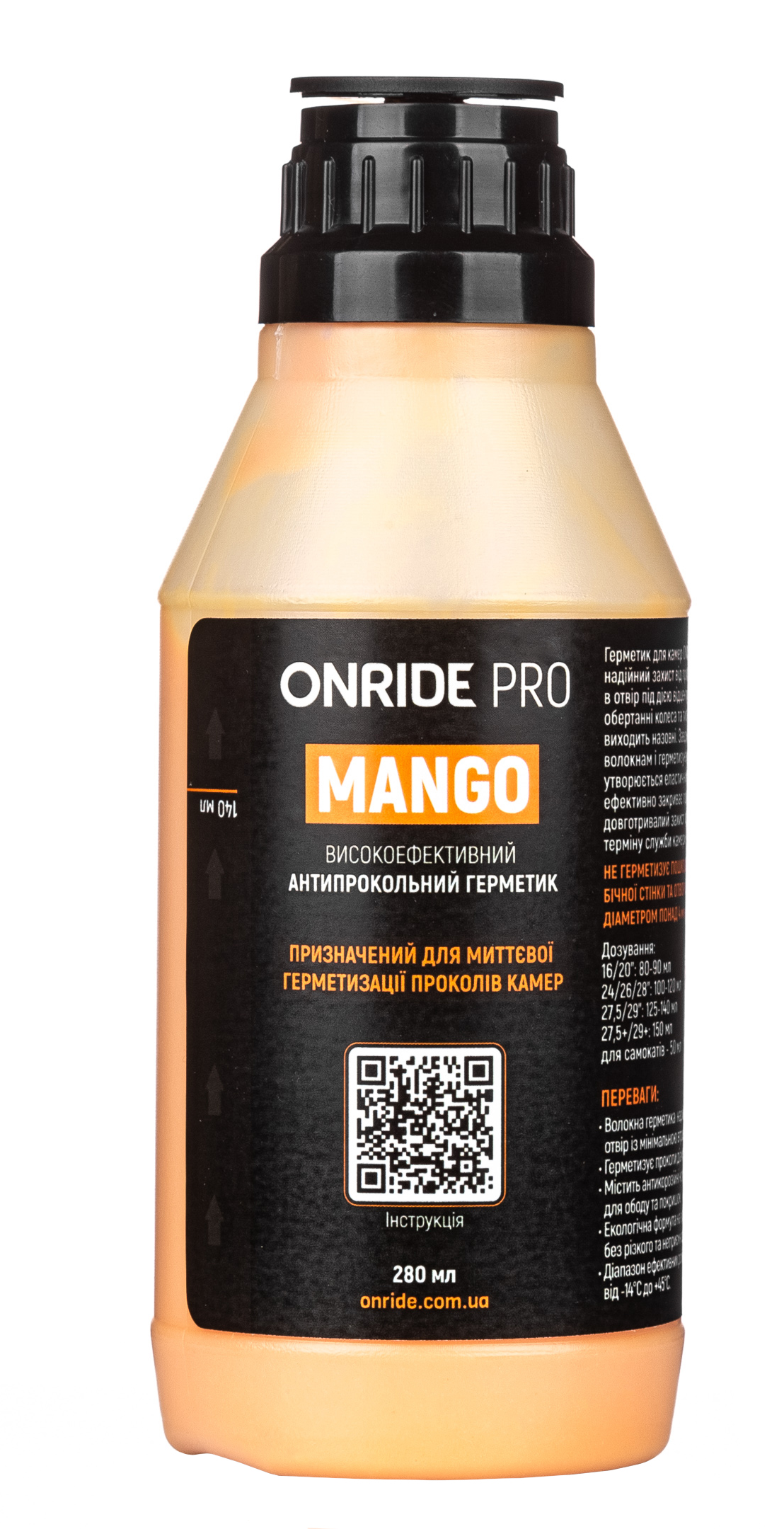 Герметик для камер ONRIDE Mango 280 мл це зручний об’єм для індивідуального використання та регулярного обслуговування велосипеда. Склад на водній основі швидко реагує при проколі та утворює еластичний бар’єр, який надійно закриває отвір діаметром до 4 мм. Це дозволяє продовжити поїздку без зупинок і зайвого клопоту.