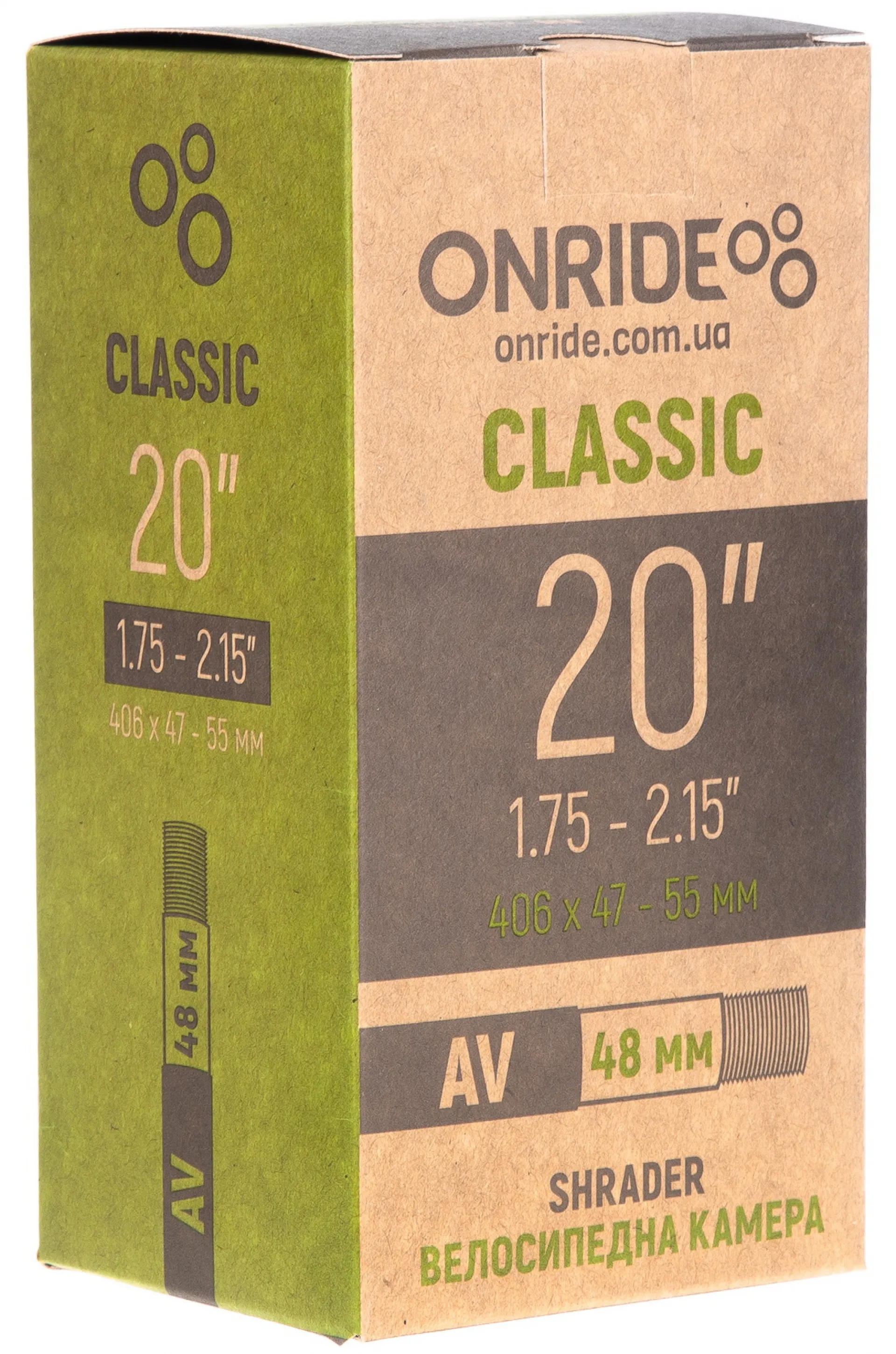 Камера ONRIDE Classic 20″x1.75-2.15″ (406×47-55) AV 48 — це якісний вибір для велолюбителів, які шукають надійні комплектуючі для міських та гірських велосипедів. Завдяки універсальному діаметру та асортименту ширин, цей продукт підходить для різних типів велосипедів.