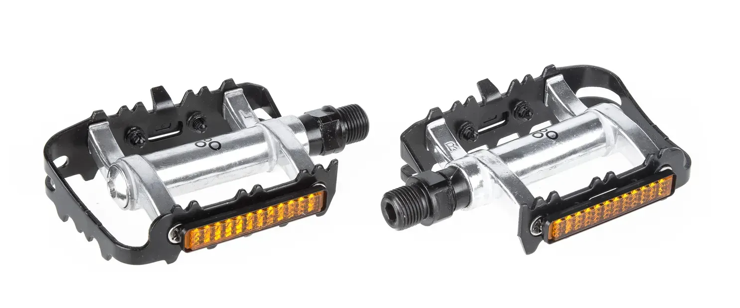 Педалі ONRIDE City 40 — це міцні та легкі педалі для міських велосипедів. Виготовлені з алюмінію, вони забезпечують високу жорсткість і довговічність. Оснащені пром-підшипниками для плавного обертання та світловідбивачами для безпечного катання в умовах низької видимості. Підходять для використання з тукліпсами та ремінцями.