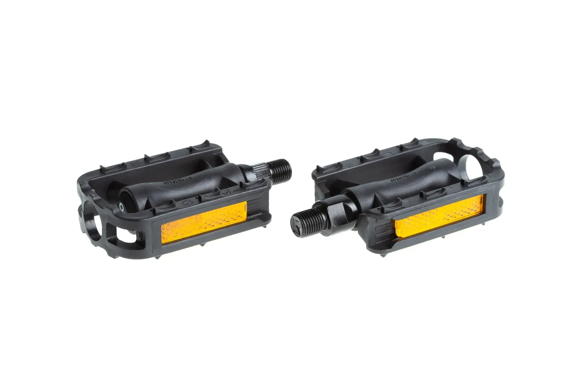 Литі шипи покращують зчеплення з дитячим взуттям, а світловідбивачі підвищують видимість у темну пору доби. Педалі оснащені втулкою, що робить їх довговічними та простими у обслуговуванні.