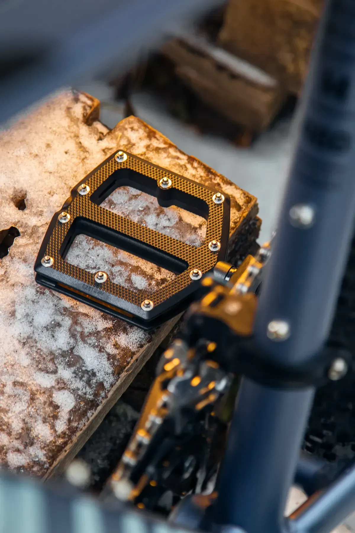 Педалі ONRIDE Ride 70 створені для тих, хто цінує надійність і зручність під час велосипедних поїздок. Виготовлені з посиленого нейлону, ці педалі мають змінні шипи, що забезпечують чудове зчеплення та контроль.