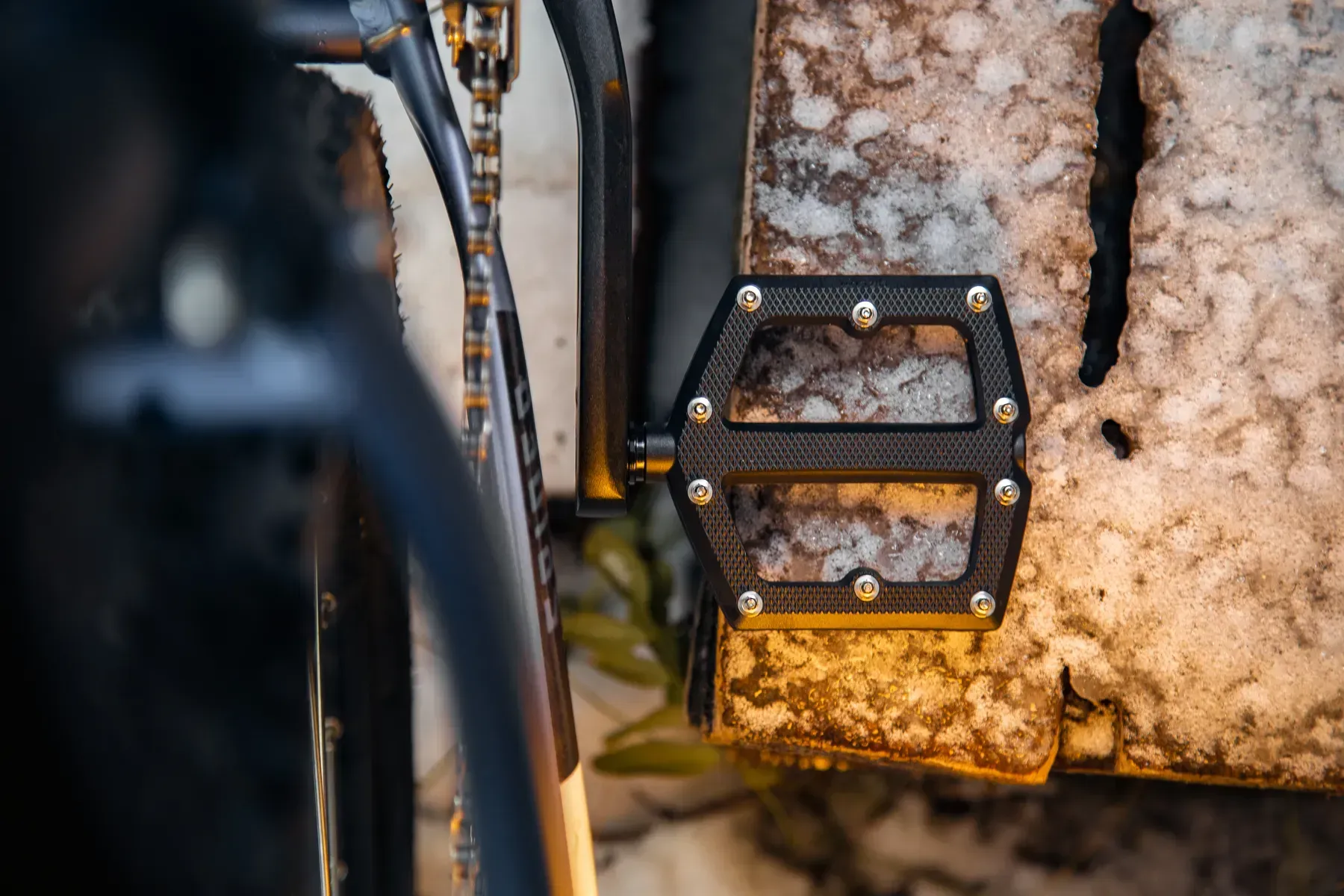 Особливістю моделі є наявність зйомних шипів, які покращують зчеплення з підошвою, адаптуючи педалі під різні стилі катання та умови доріг. Виріб оснащений промисловими підшипниками, що забезпечують плавність і довговічність роботи механізму. Чорний колір дизайну робить ці педалі універсальним аксесуаром для будь-якого велосипеда.
