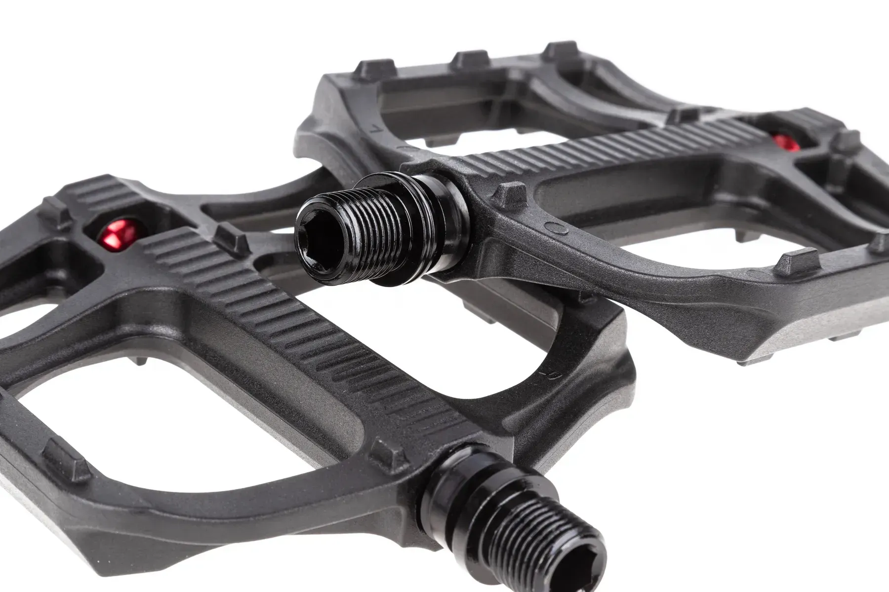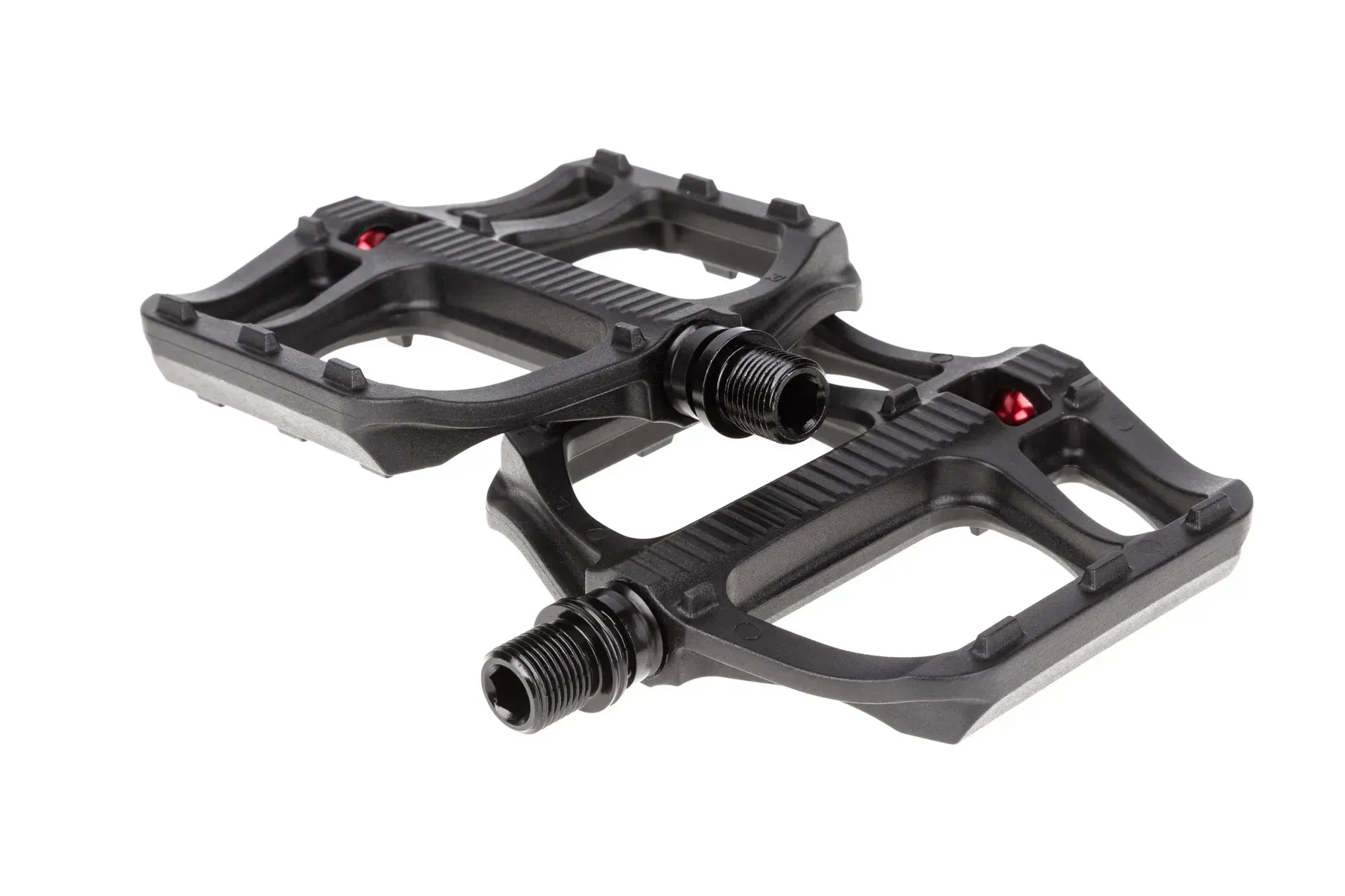 Педалі TW із міцного нейлону створені для надійного зчеплення та довговічної роботи. Оптимальний розмір платформи 105×105 мм забезпечує стійкість та комфорт при їзді, а рельєфна поверхня запобігає ковзанню навіть на пересіченій місцевості.