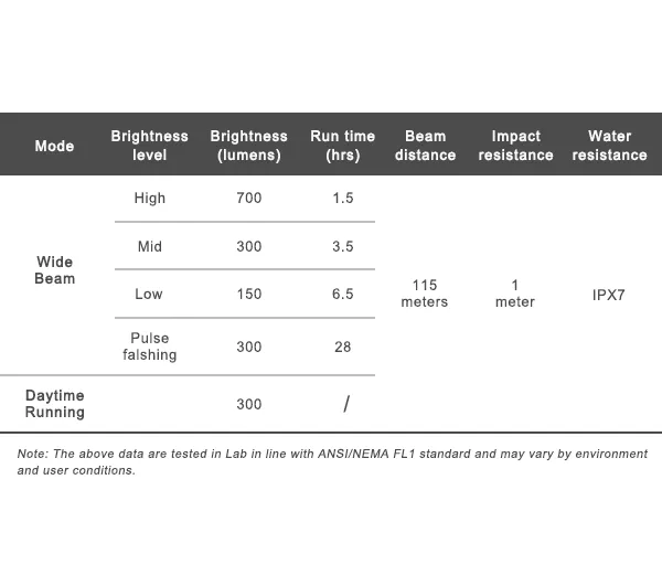 - Швидке мерехтіння: 300 Лм – До 28 годин.
