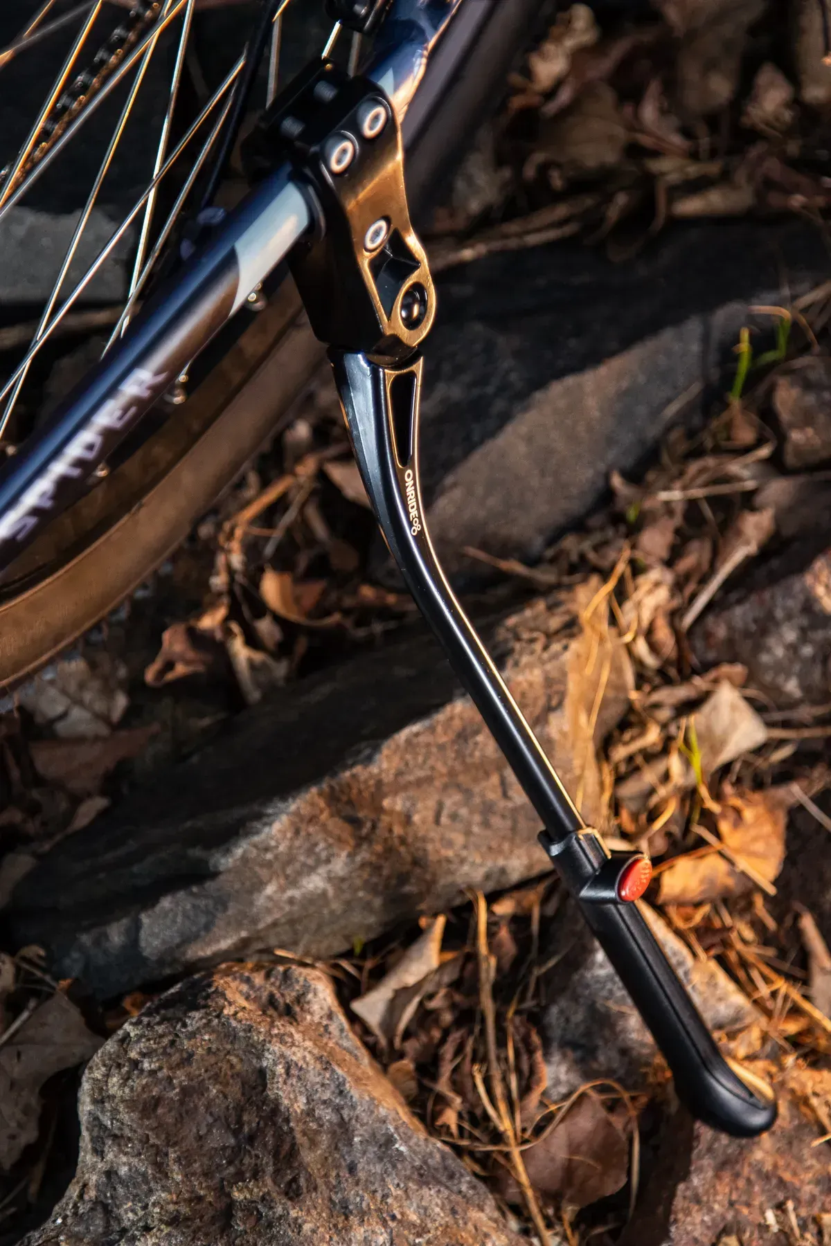 Підніжка ONRIDE Forward II призначена для велосипедів з діаметром коліс від 24 до 29 дюймів, що робить її ідеальною для різноманітних типів велосипедів, включаючи MTB і міські моделі. Вона кріпиться на нижнє перо рами, забезпечуючи легкість установки і надійну фіксацію. Завдяки своєму чорному кольору, підніжка органічно виглядає на велосипеді будь-якого дизайну.