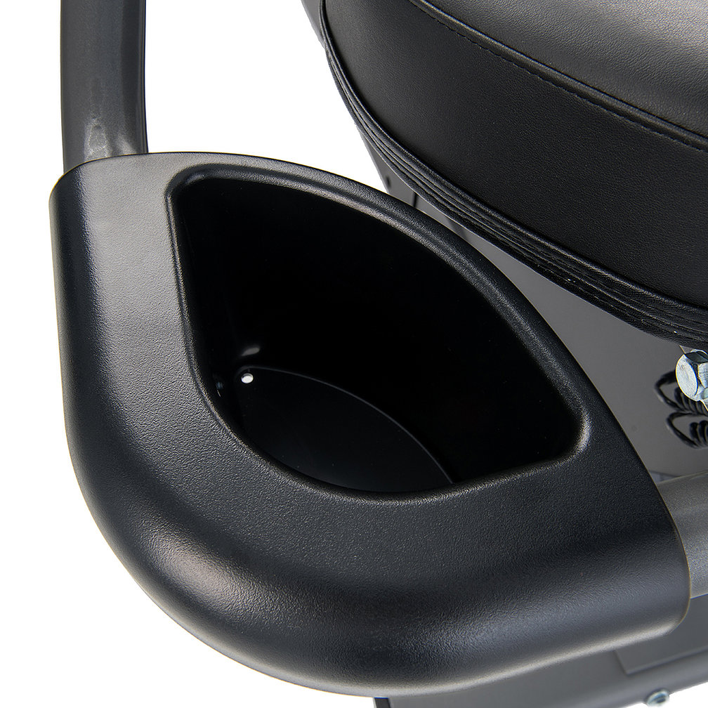 - Анатомічна спинка сидіння. Сидіння має 12 рівнів регулювання відстані до педалей велотренажера;