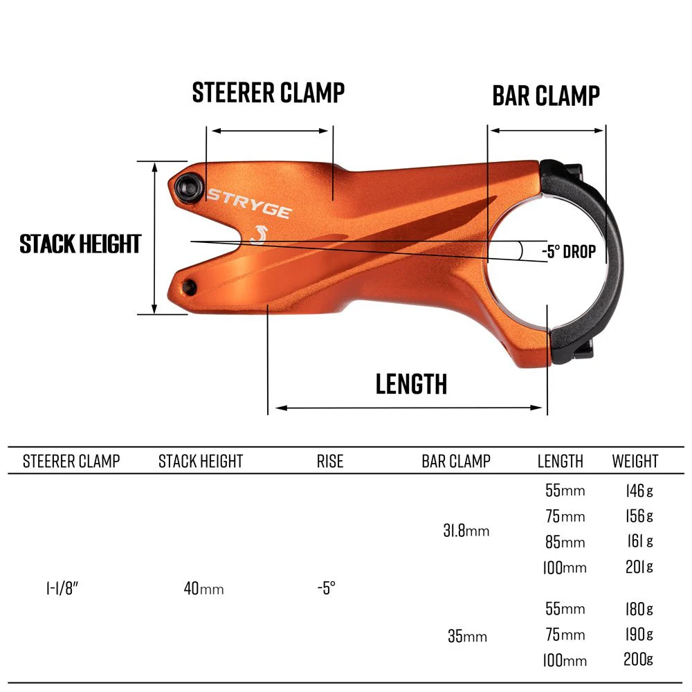 FUNN Stryge має стандартний діаметр 35 мм і пропонується в різних розмірах, що дозволяє підібрати оптимальну довжину в залежності від уподобань та стилю катання. Винос має кут підйому 5 градусів, що дозволяє встановити кермо в зручне положення.
