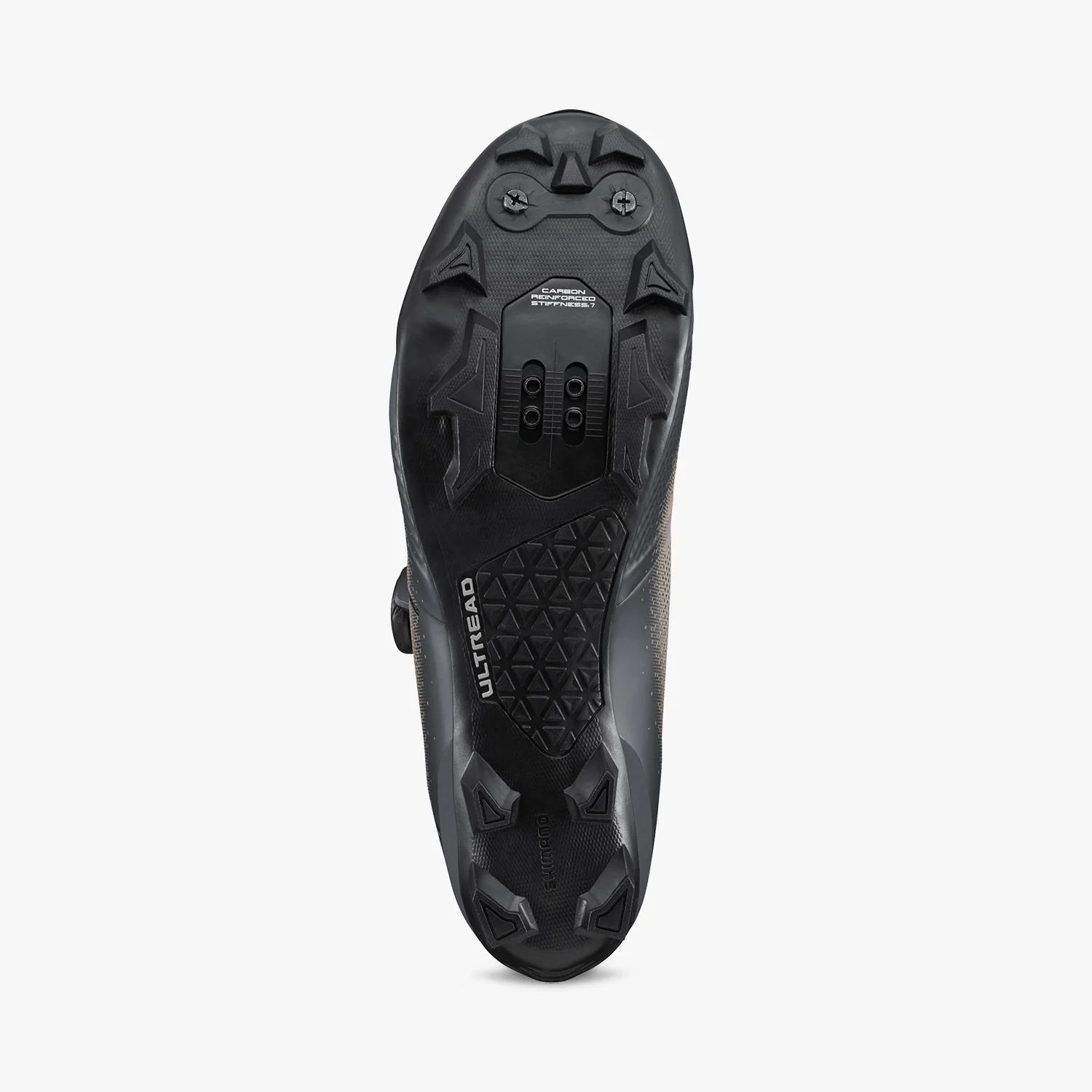 Резиновая подошва ULTREAD, разработанная специально для кросс-кантрийных и гравийных велотуфель Shimano, эффективно отталкивает грязь и обеспечивает превосходное сцепление вне велосипеда в любых условиях. Усиленное крепление для шипов позволяет устанавливать 18-миллиметровые шипы на носок для езды по неровным трассам, а углублённый кармашек для шипов позволяет легко встегиваться в педали SPD для оптимальной эффективности педалирования.